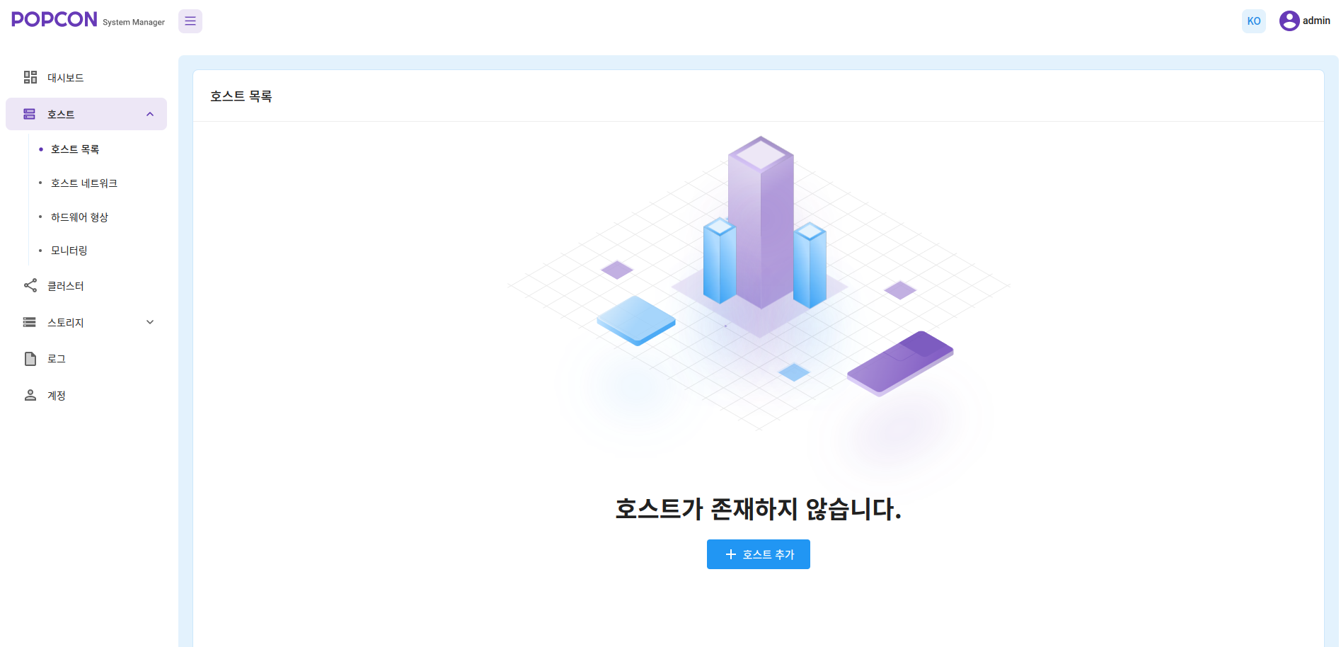 - 1. PSM UI에 접속한 후, 좌측 패널의 호스트 > 호스트 목록 메뉴로