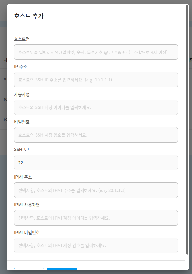 호스트명 : 등록할 서버의 이름을 입력합니다. (예) host-1, popcon1, myserver